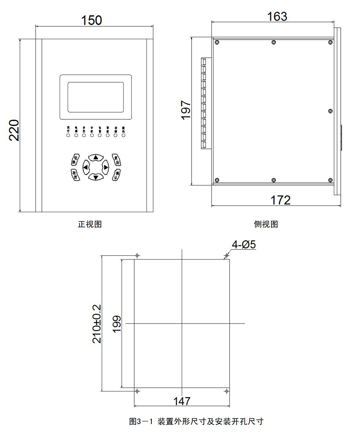 装置机箱符合IEC60297-3 标准,整体嵌入式安装,后接线,安装开孔尺寸见图3-1。